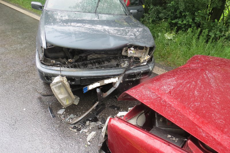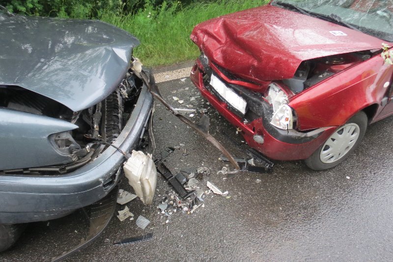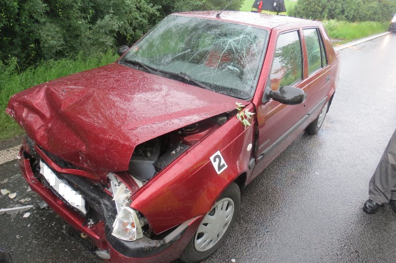 STARÉ MÍSTO / Čejkovice – V pátek 17. června dopoledne jel pětapadesátiletý řidič osobním vozem Volkswagen Passat ve směru od Starého Místa na Čejkovice. V daném úseku předjížděl nákladní auto a přitom se zřejmě nestačil včas zařadit do svého jízdního pruhu a čelně se střetl s protijedoucím voziem Dacia Solenza. Při nehodě došlo k lehkému zranění řidiče dacie a jeho spolujezdce. Ve druhém voze byli lehce zraněni dva spolujezdci. Alkohol u řidičů vyloučila dechová zkouška, celková škoda byla vyčíslena na 60 tisíc korun.
