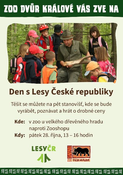 strašidelné soutěže o ceny. Stezka vede kolem Ostrova lemurů, ale lemury zde tentokrát neuvidíte. Místo nich tu všechny odvážlivce přivítají čarodějnice, duchové a kostlivci. V pátek se v zoo uskuteční Den s Lesy ČR. Ta dětským návštěvníkům nabídne pět soutěžních stanovišť, na kterých se budou plnit úkoly, malovat a poznávat. Za splnění všech disciplín čeká na soutěžící drobná odměna. Návštěvníci najdou stanoviště u velkého dřevěného hradu naproti Zooshopu. Během oslav si na své přijdou i zvířata. Pro ty jsou téměř na každý den připravené dýňové nadílky doplněné o jejich oblíbené pochoutky. O dýňové speciality však nepřijdou ani návštěvníci. V Restaurantu Lemur se bude servírovat dýňové menu pro děti i dospělé. V Týdnu duchů bude zoo otevřena od 9 do 18 hodin, návštěvníci mohou zůstat i déle.