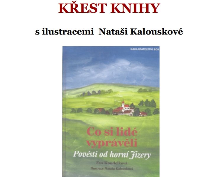 ŽELEZNICE – V knihovně v Železnici se v pondělí 15. prosince koná křest knihy s ilustracemi ředitelky železnického vlastivědného muzea Nataši Kalouskové. Začátek je v 17 hodin. Knihou na místě provede bývalá železnická starostka Olga Jakubcová a ilustrátorka N. Kalousková. Kniha „Co si lidé vyprávěli“ od Evy Koudelkové se snaží zachytit ducha lidových pověstí ze západních Krkonoš a jejich podhůří, jednoho z nejbájivějších krajů u nás. V jeho hlubokých lesích se skrývalo množství strašidel, vysoko v horách žil Krakonoš, nejpověstnější ze všech horských duchů, co jich naše země má, po krajině kolem Jilemnice se proháněl duch černokněžníka Vejrycha. A v místních chalupách žili zemití obyvatelé se svým osobitým nářečím, v jejichž vyprávěních se všechny zvláštnosti zdejšího kraje odrážely.