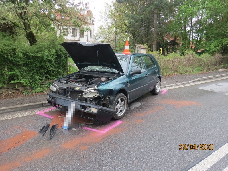 JIČÍN – Soudná – Ve středu 29. dubna v půl druhé odpoledne jel prozatím neznámý řidič vozu VW Golf Revoluční ulicí směrem na Valdice. Přitom se s největší pravděpodobností plně nevěnoval řízení a nesledoval aktuální provoz před sebou. Na křižovatce s ulicí Soudná tak zřejmě přehlédl stojící a současně vlevo odbočující Škodu Roomster, kterou řídila sedmapadesátiletá řidička. V autě na zadním sedadle v dětských autosedačkách spolu s ní cestovaly dvě malé děti. Automobil VW Golf narazil přední částí do zadní části odbočujícího vozu v době, když žena dávala přednost protijedoucím autům. Po srážce provinilec na nic nečekal a z místa dopravní nehody utekl. V tu chvíli se nezajímal ani o zdravotní stav posádky nabouraného auta. Ke zranění řidičky naštěstí nedošlo. Zdravotní záchranáři převezli nezletilé děti do nemocnice k preventivnímu lékařskému vyšetření. U řidičky provedená dechová zkouška vyloučila požití alkoholu. Celková škoda se předběžně odhaduje na 40 tisíc korun. Dopravní policisté z Jičína šetří příčinu a míru zavinění dopravní nehody a dál pátrají po zatím neznámém řidiči