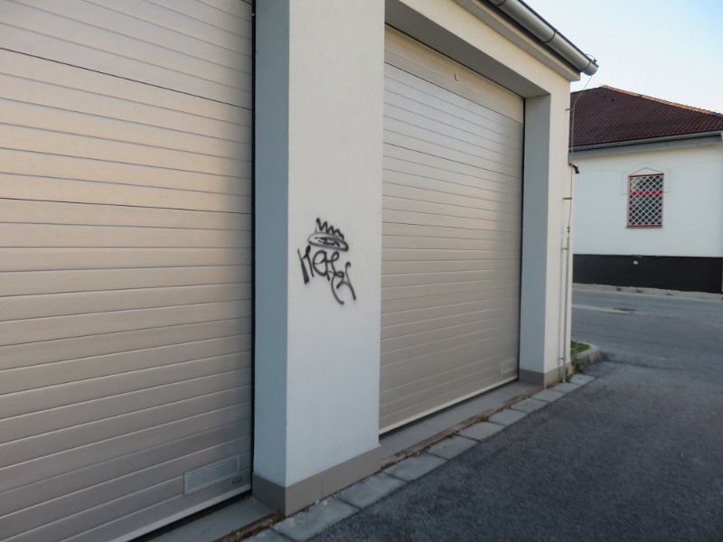 Sprejer se „zvěčnil“ na fasádě domu a garáže v Jičíně