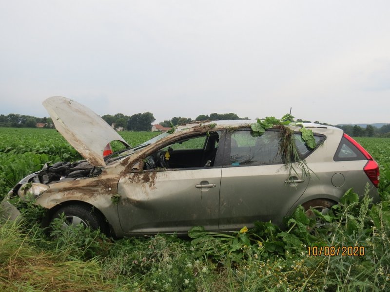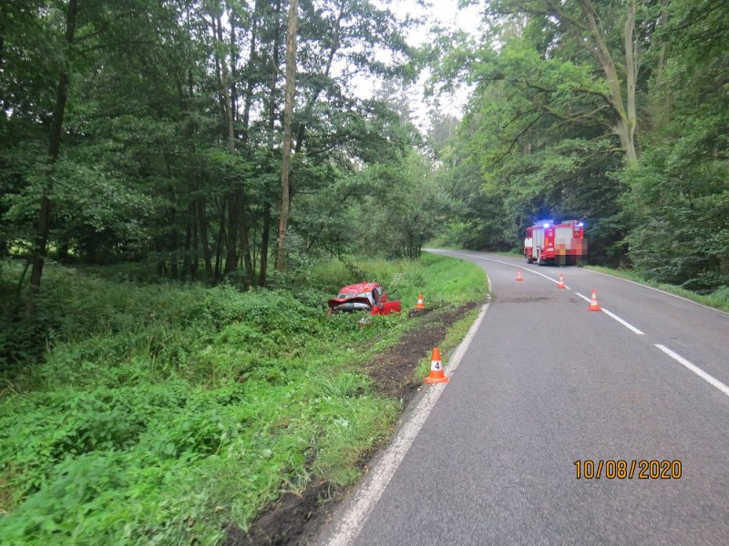 JIČÍNSKO – Na pondělí 10. srpna nebude v dobrém vzpomínat jednadvacetiletý řidič osobního auta Kia CEED, který ve čtyři hodiny odpoledne jel od Chomutic na Ostroměř. Při průjezdu levotočivou zatáčkou pravděpodobně nepřizpůsobil na mokré silnici rychlost jízdy a vjel na pravou krajnici. Ta ho vynesla do protisměru, kde dostal smyk. Ten se mu už nepodařilo zvládnout a s autem skončil v levém silničním příkopu, kde se přetočil na střechu. Mladík utrpěl lehké zranění, které si vyžádalo převoz do nemocnice k lékařskému vyšetření. Požití alkoholu u něj vyloučila dechová zkouška. Celková škoda je předběžně odhadnuta na 50 tisíc korun.