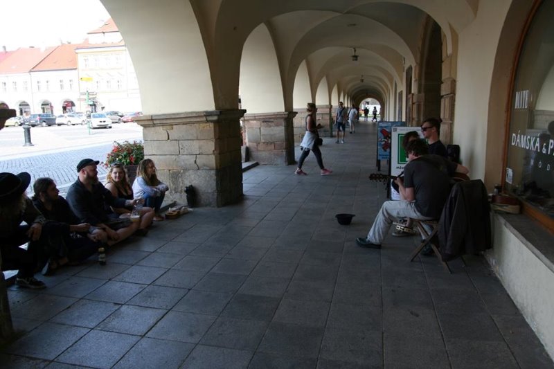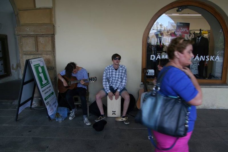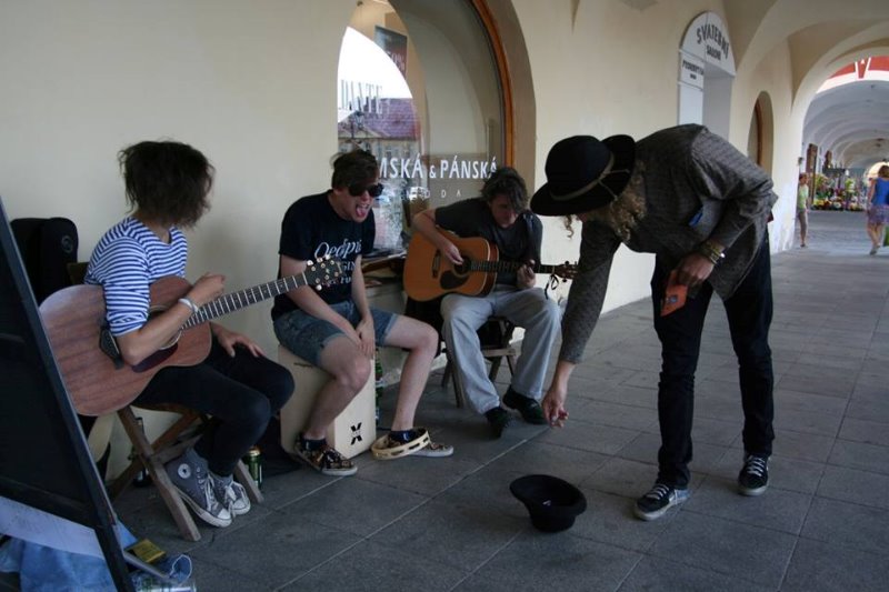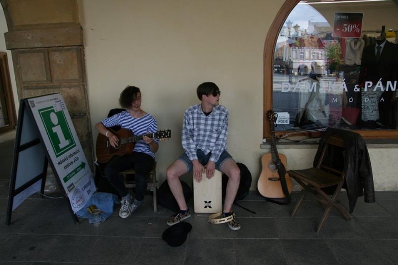 JIČÍN – „Rozhodli jsme se zahrát si před lidma ve městě a vyzkoušet si, jak na hudbu, kterou hrajeme, budou reagovat a jestli je možný vytáhnout z nich i nějaký drobný. Byli jsme tam tři. Já jsem hrál na cajon, to je španělský perkusní nástroj, Máša na kytaru a irskou flétnu a Australan Steven na kytaru a ukulele. Hráli jsme akustický songy, který jsme vymysleli, popřípadě covery různých jiných kapel,“ přibližuje KNH jednu z epizod letošního letního Umění v ulicích Jičína. Kolemjdoucí tak například zaslechli písničky Havel nebo Demantz od uskupení The Prostory Revival, které účinkující milují a doporučují! „Skvělá zkušenost. Všichni jsme se jednoznačně shodli, že když po škole neseženeme žádnou práci a budeme bezdomovci, není nic jednoduššího než se každej den sejít v Jičíně a vydělat si pár stovek na svařák, rohlík a cigarety ♥,“ dodává s mnohoznačným výrazem ve tváři KNH.