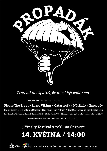 nadsázku a pořádnou porci sebeironie. Nebojí se urážení vlastního festivalu, vystupujících umělců i fanoušků. Těm to ale podle všeho nevadí a antikampaň Propadáku funguje. Na facebookovou událost Propadáku po dvou týdnech přislíbila účast bezmála pětistovka lidí.