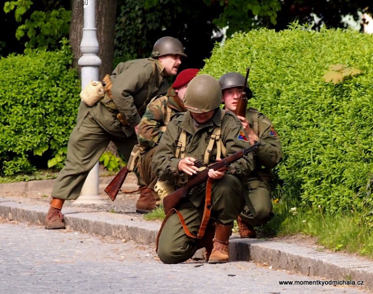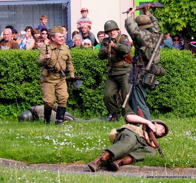 HOŘICE – Květnové oslavy v Hořicích doplnilo otevření nové exposice věnované I., II. a III. odboji v Masarykově věži samostatnosti s vypouštěním holubic jako symbolu míru. Hlavním bodem programu květnových oslav ( v pátek 8. května) však byla komentovaná bojová ukázka historických bojových střetů „Tenkrát v máji v Hořicích“, při které návštěvníci viděli obsazení náměstí Jiřího z Poděbrad vojsky Wehrmachtu, dobytí radnice, americké vyjednávání s generálem Schőrnerem, postupné získávání území ve prospěch sovětských a amerických vojsk a konečnou kapitulaci vojsk německých.