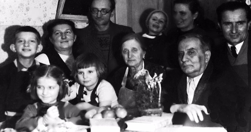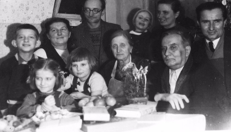 Nevím, jestli je to důležité, ale pro ty zvědavější čtenáře blogu doplním, že fotografie vznikla o Vánocích v roce 1955, u mé „hradecké“ babičky, kde jsme se na Štědrý den všichni z Hradce scházeli, abychom se nejen podarovali, ale také si zavzpomínali si a společně se vyfotografovali. Vznikl tak dokument, který je v naší rodině předáván z generace na generaci, jako věrná vzpomínka na naše nejbližší, kteří už dávno nežijí. Je to poslední fotografie, kdy byla naše rodina ještě úplná. Již o 4 měsíce později moje maminka zemřela. Stojí druhá zleva, vedle mého tatínka. Z druhé strany, zcela vlevo stojím já, tehdy 10tiletý. Před námi je moje 7miletá sestra Evička. Vedle ní je sestřenice Liduška, pak již zmíněná babička, se svým manželem, mým „hradeckým“ dědečkem. Ten je na této fotce také vyfotografován naposled, protože o půl roku později zemřel. Vzadu ještě chybí jmenovat sestřenici Jiřinku, její maminku a zároveň moji tetu Boženku a úplně vpravo stojí strýc Emil, autor fotografie. Jak je to možné?