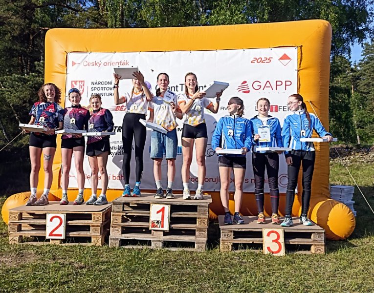 23f781c6-8f9b-4999-9fec-84ceffba6714 Nový Vojířov / Jičín – Dorostenky Sportcentra Jičín vybojovaly v sobotu 10. května v nabité konkurenci 60 štafet skvělé druhé místo na Českém poháru štafet v orientačním běhu u Nového Vojířova v jižních Čechách. Závod rozběhla hostující Barbora Chrástová a Viktorie Vyziblová na druhém úseku vytáhla trio dokonce na první pozici. Finišující Sheila Havrdová sice čelo závodu ztratila, ale nepříjemně dotírající štafety Turnova a Brna porazila na doběhu o jednu, respektive čtyři vteřiny.