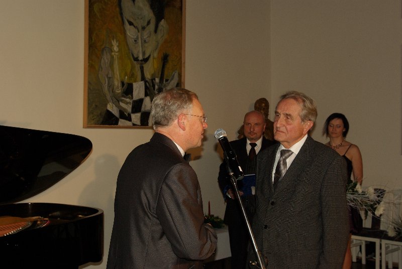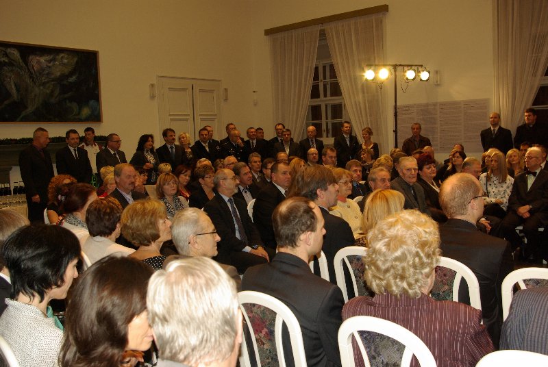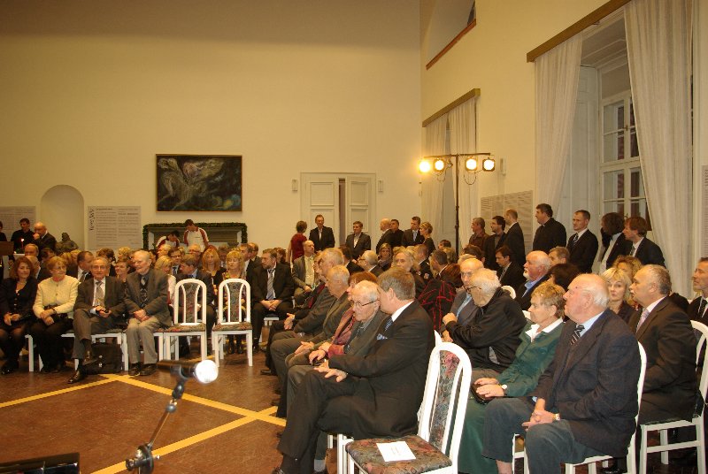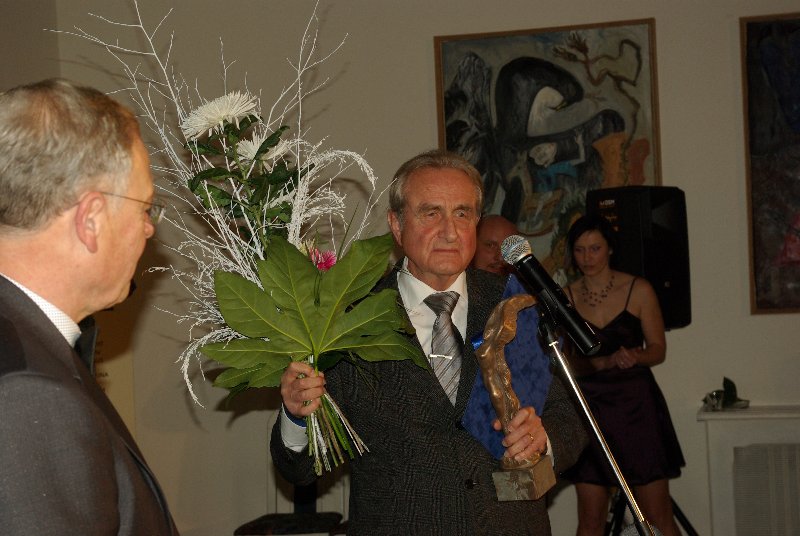 blahopr 3 titl. JIČÍN –  Zaplněný Porotní sál Valdštejnského paláce v Jičíně zažil další předávání Ceny města Jičína. V pořadí devátým laureátem se stal bývalý ústavní soudce Vojen Güttler. Převzal sošku v podobě éterické ženské bytosti a odměnu 50 tisíc korun. Deset tisíc korun z této částky bezprostředně  věnoval Oblastní charitě Jičín. Hodnotící komise složená ze zastupitelů ( J. Malý, M. Starý, M. Kůta), i z některých dosavadních držitelů ceny ( J. Francek, R. Kvaček, J. Havlík a J. Novotný) přihlédla k jeho celoživotní práci, v potaz však byla brána i připomínka, že by ocenění měli dostávat lidé, kteří jsou trvale propojeni s městem a jejichž aktivity pro Jičín jsou patrné, což samozřejmě, nijak nesnižuje zásluhy a úspěchy doktora Güttlera. Na slavnostním večeru jsme se jej proto mj. zeptali, Jak on sám ocenění vnímá a co pro něj město Jičín znamená: (poslechněte si zvuk)