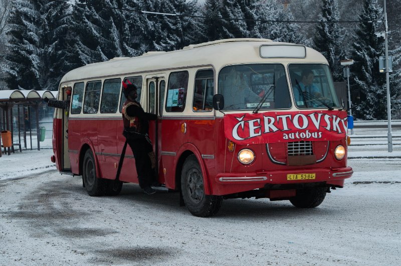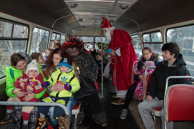 titulka Turnovsko / Český ráj  / Jablonec nad Nisou / Semily  –  BusLine opět svezl stovky dětí v čertovských autobusech v Turnově a  v Jablonci nad Nisou  u příležitosti svátku svatého Mikuláše. V Turnově  dopravce  navázal na loňskou retro novinku v podobě jízd v historickém autobusu Škoda RTO. V úterý už  v Jablonci nad Nisou  jezdil moderní autobus městského typu. „Již po deváté jsme letos vypravili oblíbené čertovské autobusy. Do našeho „pojízdného pekla“ mohly děti nastoupit zdarma. Setkaly se s naším Mikulášem, andělem a dvěma čerty, pro které už  měly většinou titulka 1 dopředu připravenou básničku nebo písničku.  Za odměnu dostaly sladkost.  O tuto zábavnou formu cestování byl veliký zájem nejen ze strany dětí, ale díky historickému  autobusu  i  dospělých,  kteří měli možnost zavzpomínat na cestování za dob svých rodičů a prarodičů,“  popsal  Radek Chobot, ředitel společnosti BusLine a.s.. Především pro rodiče a prarodiče byl veterán raritou, mnozí z nich si pořizovali jeho fotografie.