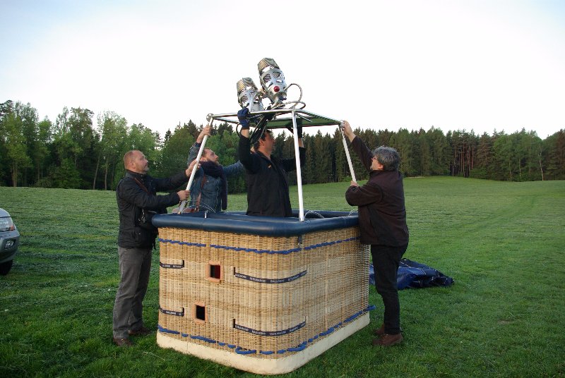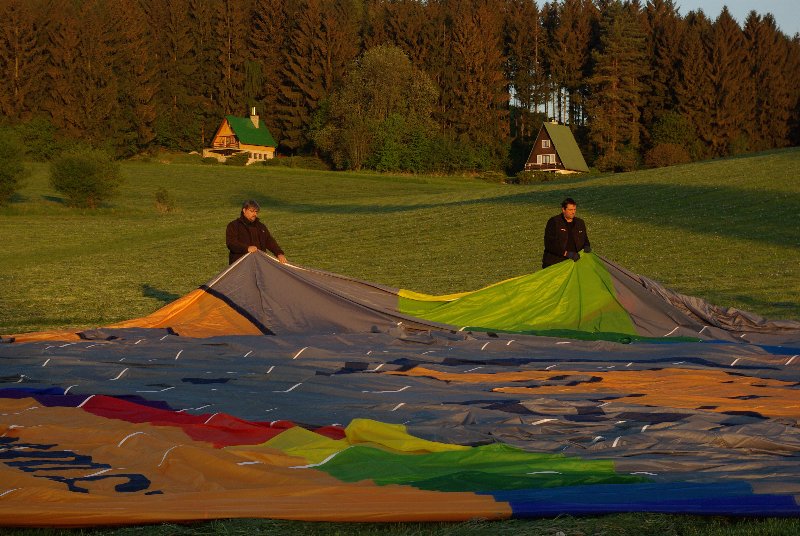 pasažéry. Tento unikát představila novinářům společnost Baart, která zároveň umožnila, aby si zástupci médií vzduchoplavbu v upraveném koši vyzkoušeli. Z tohoto letu jsme pro vás na zemi i ve vzduchu natočili zvukovou reportáž, kterou doplňujeme fotogalerií. Balón vzlétl časně ráno z Javornice nedaleko Jinolic. Předcházely přípravy na start, na kterých se podíleli i všichni pasažéři. Dana Vejnárková za vzduchoplavce upozornila, že nový balón Ultramagic je z mimořádně odolného materiálu, z ultralastu, který umožňuje přistávat bez problémů třeba i v poušti mezi skalami a trnitými keři: (zvuk)
