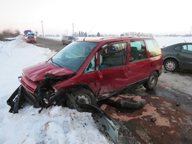 BÍLSKO / Hořicko – V neděli 22. ledna odpoledne jela čtyřiadvacetiletá řidička osobním vozem Seat Toledo ve směru od Bílska na obchvat Hořic. Při průjezdu pravotočivou zatáčkou přejela zřejmě vlivem nepřiměřené rychlosti jízdy do protisměru, kde narazila do protijedoucího Citroenu Evasion. Po nárazu skončila obě auta na vedlejší účelové silnici. Při nehodě utrpěla řidička seatu a její spolujezdec zranění, se kterými byli transportováni do jičínské nemocnice. Zranění utrpěl i řidič druhého vozu a jeho spolujezdkyně, kteří skončili ve Fakultní nemocnici v Hradci Králové. Alkohol vyloučila dechová zkouška, celková škoda byla vyčíslena na 160 tisíc korun.