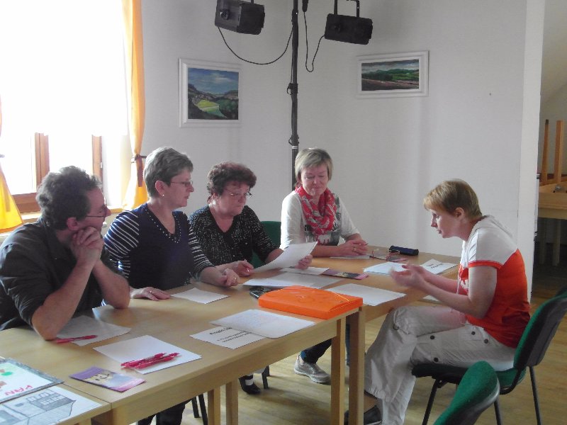 porota Nelehký úkol vybrat z těchto prací ty nejlepší měla sedmičlenná porota, která se sešla poslední květnový pátek. Předsedali jí farář P. Mariusz Robak a starostka Hana Štěrbová. Společně s pedagogy základní školy představil  odborný názor za výtvarnou část místní malíř Petr Stuchlík a za literární autorka pohádek Naďa Hamanová. Z několika desítek prací jich porota k další prezentaci na výstavě na hradě Pecka doporučila dvacet a deset z nich ocenila.