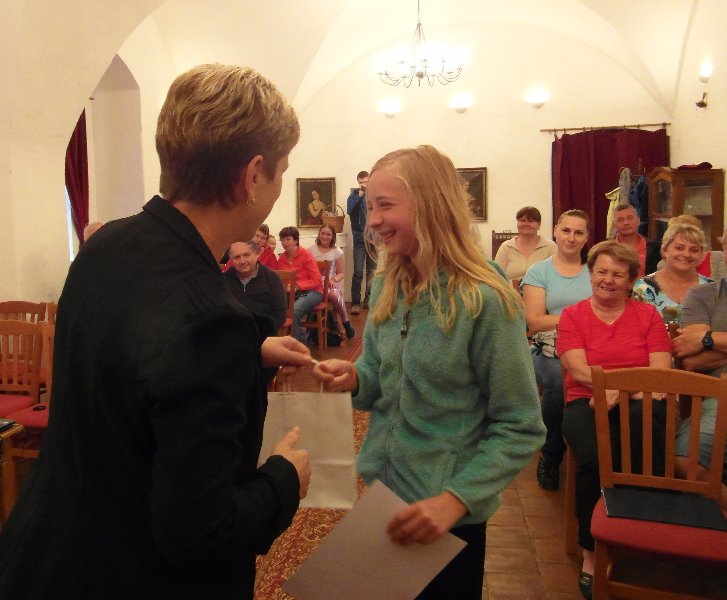 Slavnostní vyhodnocení a zároveň vernisáž výstavy vybraných prací se uskutečnila v úterý 6. června v klenbovém sále hradu Pecka. Pan farář a paní starostka předali vítězným autorům diplomy a  ceny, mezi kterými byly nejen štemberkovské materiály věnované Arcibiskupstvím pražským, ale například i volné vstupenky do Památníku Lidice nebo exkurze do Státního okresního archivu v Jičíně.