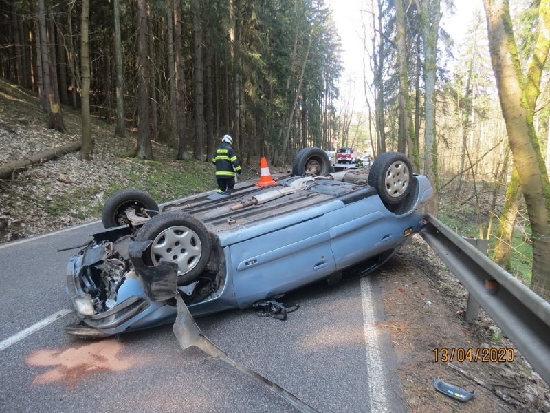 Řidič nezvládl řízení, skončil s autem na střeše