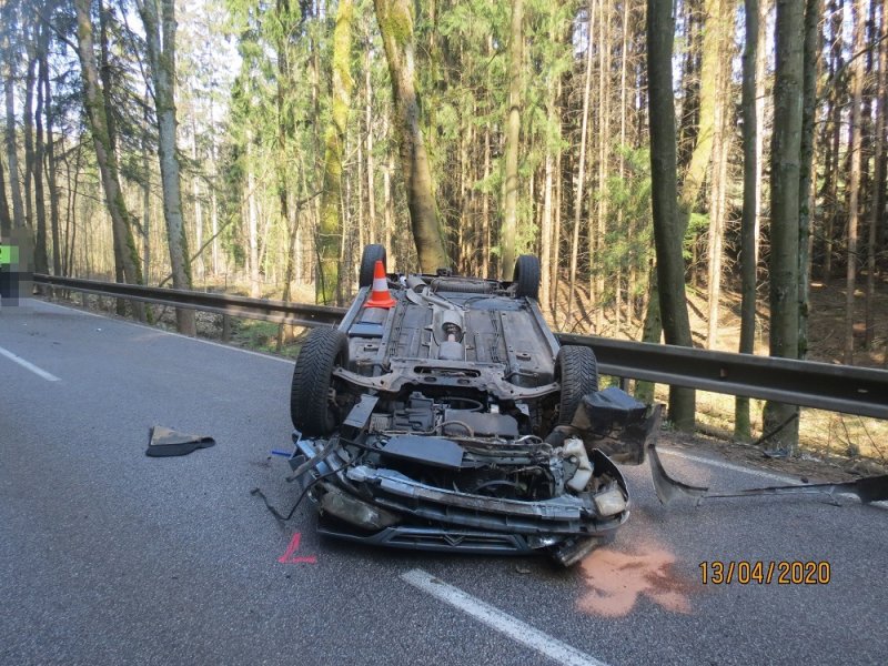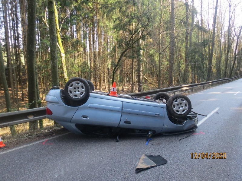 nehoda-u-bele-1 Novopacko / Bělá u Pecky  –   V pondělí 13. dubna krátce po osmé hodině ranní přijali dopravní policisté oznámení o dopravní nehodě.  Devatenáctiletý řidič Citroenu Xsara v tu dobu jel lesním úsekem od Nové Paky.  Jel pravděpodobně  dostal Při projíždění levotočivé zatáčky jel na mokré silnici velmi rychle a dostal smyk. Pak  přejel směrový sloupek a vyjel vpravo, kde narazil do břehu silničního příkopu. Po nárazu se  auto  převrátilo na střechu a skončilo  na protější straně ve svodidlech. Mladík utrpěl zranění, které si vyžádalo lékařské vyšetření, požití alkoholu u něj na místě vyloučila dechová zkouška.  Celková škoda se předběžně  odhaduje  na 52 tisíc korun.