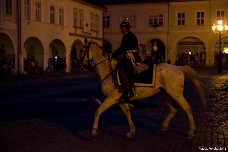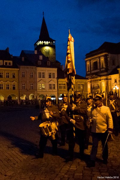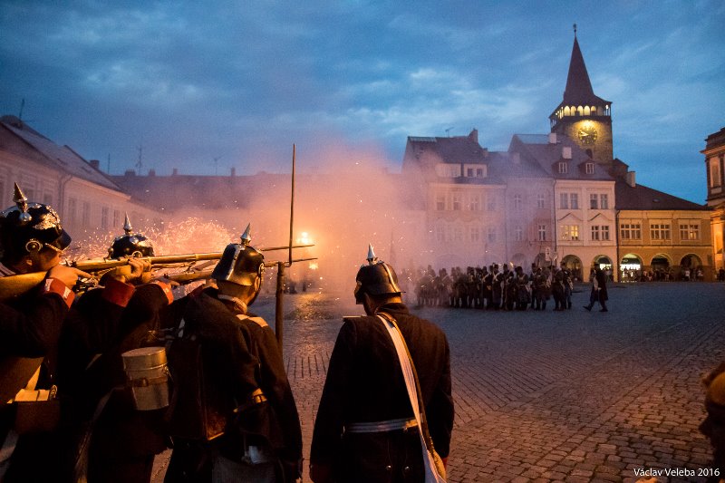 titulka JIČÍNSKO –  Víkendová připomínka 150. výročí války 1866 v Jičíně a v okolí nebyla oslavou válečné vřavy.  Program demonstroval absurditu válečných útrap  a obětí  a upozornil, že v  konfliktu zaujímalo  významné místo město Jičín a jeho bezprostřední okolí.  O těchto skutečnostech jsme informovali na :  http://zpravyceskyraj.cz/v-roce-1866-se-nad-ceskym-kralovstvim-objevil-symbol-valky-ocasata-kometa/ . Součástí programu, který připravilo Město Jičín  ve  spolupráci  s Komitétem  pro udržování  památek z války roku 1866, byla večerní bitevní ukázka  historických jednotek. Snímky z této vřavy pořídil  spřízněný fotograf DZ Václav Veleba. Děkujeme!