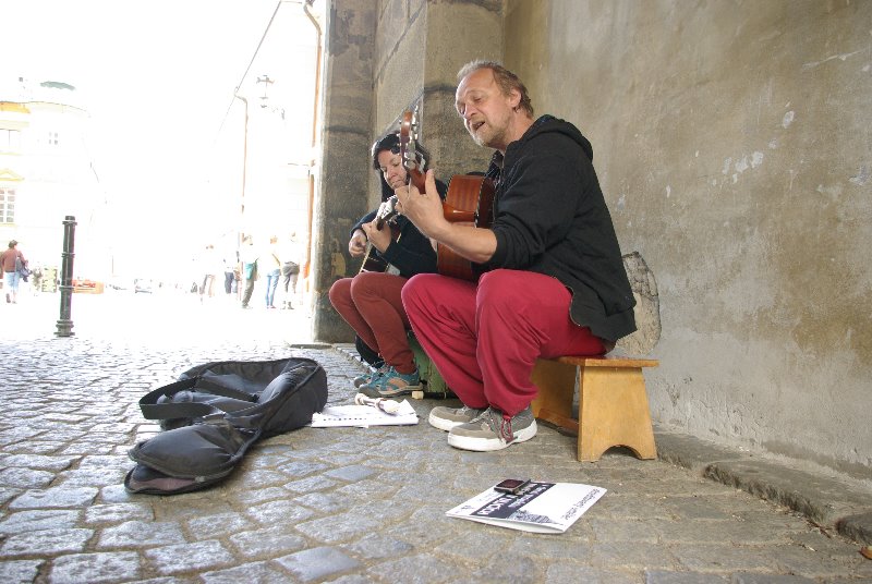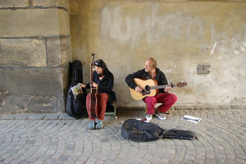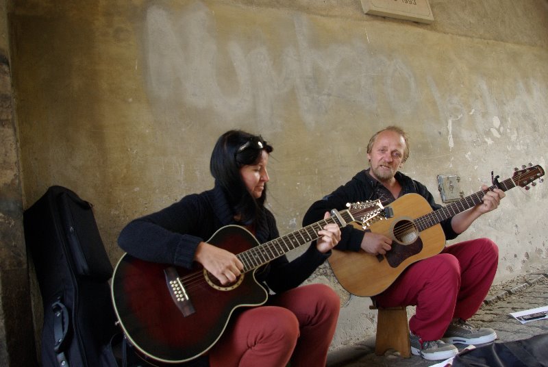 JIČÍN – K letnímu pouličnímu muzicírování v Jičíně dnes přispěli hudebníci z Liberce: Katka Procházková a Tomáš Řehořek, kteří v nepříliš horkém letním dni nabízeli příjemnou kulisu folkové hudby. Muzikanti „odkudkoliv“ totiž mohou již pátým rokem od července do srpna vystupovat v centru, aby dodali atmosféru historickému jádru i turistické sezóně. Hudební umění se tak postupně stalo svébytnou součástí kultury města. Program „Prodloužené víkendy v Jičíně“ navíc nabízí návštěvníkům i místním mnoho příležitostí, aby se mohli přes léto setkávat s tvorbou pouličních kumštýřů různých žánrů, profesionálů i amatérů, hudebníků, divadelníků, poetů či výtvarníků.