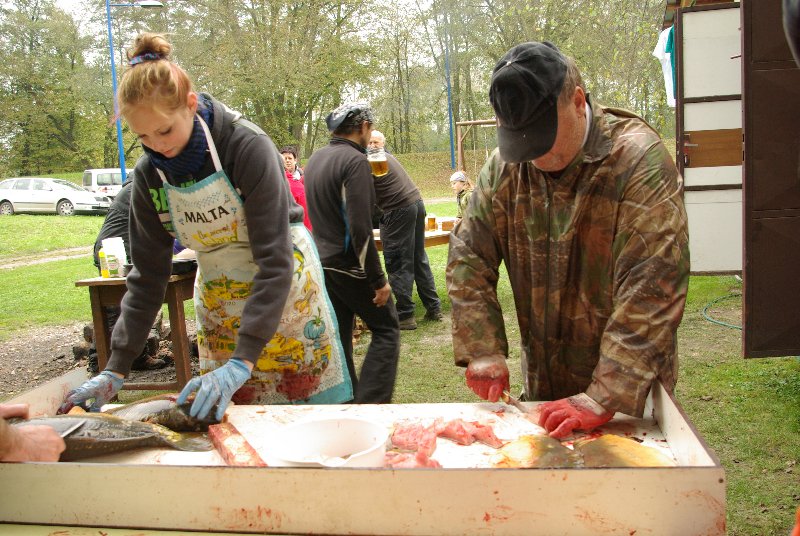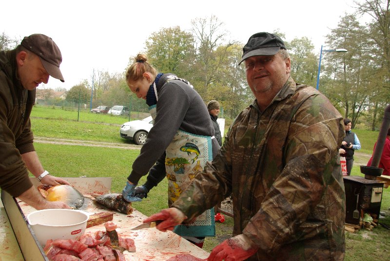 atmosféru. „Jestli na tom snímku nebudu alespoň o deset let mladší, tak si mě nepřejte!“ volá na nás s úsměvem sympatická kuchařka, která je důležitým článkem hasičského pečení řízků. Hody doprovází bezstarostné plkání o obyčejných i veledůležitých věcech, do mělké vody Zrcadla padá listí a rybáři jdou do „hasičárny“ na guláš, aby měli dost síly na další zatažení sítí. U rybníku Zrcadlo jsme pro vás při výlovu natočili reportáž: (poslechněte si zvuk)