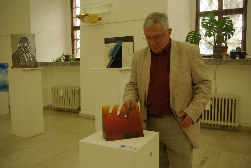 nabytek titl. JIČÍN – Nový rok v zámecké galerii v Jičíně začne dnes vernisáží výstavy významného vrchlabského výtvarníka a architekta Miloslava Říhy.  Jičínské regionální muzeum představuje jeho tvorbu ve dvou rovinách. První tvoří umělcova volná tvorba, představovaná  současnou skleněnou tavenou plastikou. Druhou rovinu výstavy tvoří Říhovy interiérové návrhy. Vernisáž, kterou uvede PaedDr. Jan Luštinec, začne v 16:30 hodin. Hudbou doprovodí houslové duo Jitka a Ondřej Koláčných.  S M. Říhou jsme se sešli při dokončování instalace v zámecké galerii. Zajímalo nás,  zda talent k preciznímu zpracování návrhů,  nápaditosti pojetí interiérů i kombinace materiálů dostal již „do kolébky“:  (zvuk)