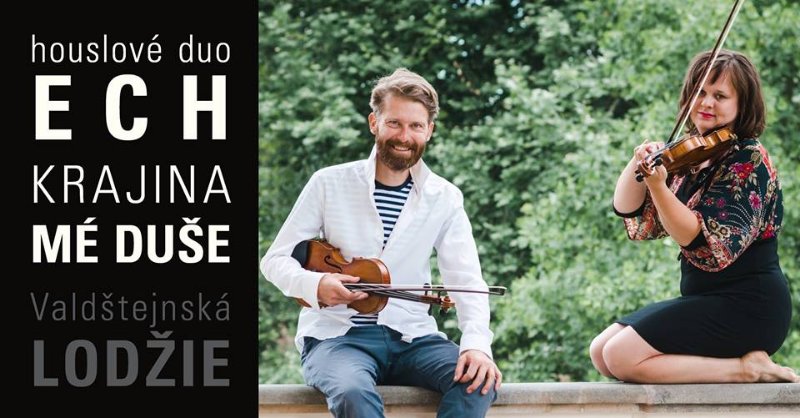 VALDŠTEJNSKÁ LODŽIE / Sedličky – V sobotu 7. července od 20 hodin se v rámci Prodloužených víkendů v Jičíně uskuteční ve Valdštejnské lodžii koncert s názvem Krajina (mé) duše. Hodinové představení houslí a tance přinese původní melodie milostné, teskné i radostné. Houslisté Jitka Břízová (Koláčná) a Vojtěch Drahoňovský společně působí pod názvem Houslové duo ECH! a spolu s výjimečným tanečníkem Martinem Dvořákem se setkají na terase lodžie.