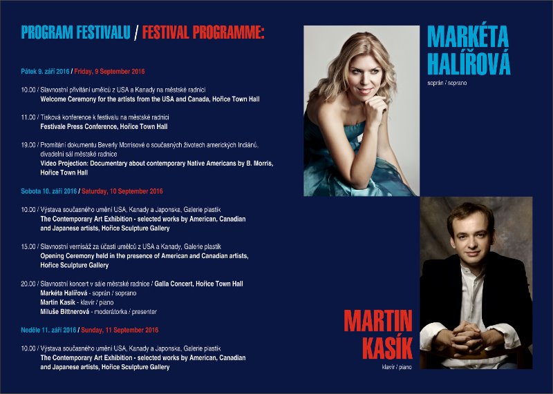 Na závěr sobotního večera (10. září) se v divadelním sále městského úřadu v Hořicích koná od 20 hodin slavnostní koncert sopranistky Markéty Halířové a klavíristy Martina Kasíka. Večerem provází Miluše Bittnerová.