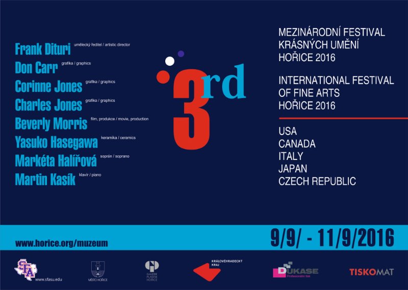 HOŘICE – Třetí ročník Mezinárodního festivalu krásných umění začal dnes v Hořicích. Pro letošní rok se koná ve spolupráci s profesory z SFA State University v Austinu (Texas). „Festivalem navazuje město Hořice, proslulé mezinárodními sochařskými sympozii na mnoholetou tradici setkávání umělců na mezinárodní úrovni. Umělci z USA, Japonska a Itálie patřili mezi pravidelné účastníky těchto setkání a jejich sochařská díla dodnes zdobí hořický vrch Gothard. Tradici spolupráce s významnými světovými umělci v posledních letech obnovila hořická Galerie plastik. Ta také bude hlavním dějištěm chystaného festivalu,“ přibližuje kurátor galerie Tomáš Mates, který u příležitosti zahájil tiskovou konferenci na hořické radnici a krátce představil jednotlivé výtvarné umělce: (zvuk)