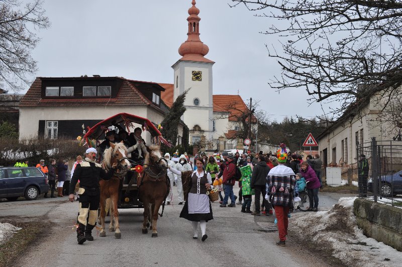 překvapení čekalo v Záhumení, které se změnilo v asijskou tržnici s „velkými slevami“ a typickými vynikajícími pochoutkami. Zakončení celého průvodu bylo již tradičně v hostinci U Krejčů. „Hudba hrála od podlahy, pití a jídla bylo jako na pravém masopustu. Veselilo se do ranních hodin. Nedělní odpoledne patřilo našim dětem. V sále v hostinci vyzdobeném balónky začala dětská diskotéka, kterou střídaly soutěže. Malé masky se nejprve trošku ostýchaly, ale za chvíli se proháněly po sále,“ doplňuje knihovnice. Bylo prý těžké určit, která maska vyhraje, protože všechny byly krásné, veselé a dětem moc slušely. A tak vyhrál každý a děti si odnášely balíček z tomboly a pochutnaly si na „šmoulím“ poháru.