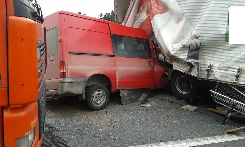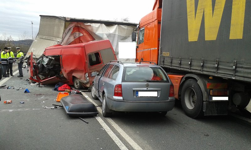titulka JIČÍN – Dnes, krátce před dvanáctou hodinou jel čtyřicetiletý řidič nákladním vozem Volvo ve směru od Mladé Boleslavi na Hradec Králové. Na obchvatu Jičína přejel z dosud nezjištěných příčin do protisměru, kde se čelně střetl s protijedoucím nákladním autem Mercedes, do kterého následně narazil Ford Tranzit a do něj ještě osobní auto Škoda Octavia. Při nehodě utrpěl řidič nákladního vozu Mercedes zranění, kterému na místě podlehl. Řidič fordu byl letecky transportován do Fakultní nemocnice v Hradci Králové a řidiče druhého nákladního auta  převezla záchranná služba  do Jičínské nemocnice, kde skončily i dvě spolujezdkyně ze Škody Octavia. Příčina nehody a míra zavinění jsou předmětem dalšího šetření. Silnice  bude z důvodu nehody uzavřena nejméně do 18 hodiny. Provoz je veden po objízdných trasách přes Jičín.