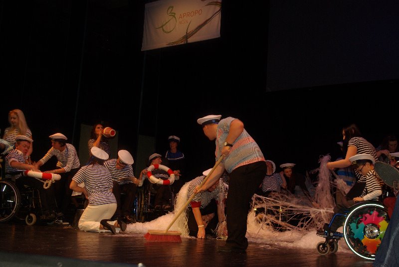 JIČÍNSKO – Sobotní 15. benefice APROPO, o.p.s. Jičín, která pomáhá rodinám s postiženým dítětem, plula v Masarykově divadle po proudu a na dobré vlně. A to jak zasvěceným průvodním slovem moderátora Jana Kovaříka, tak hlavně námořnickými, kajakovými, i jinými programovými čísly dětí a mladých lidí ze stacionáře a jejich asistentů. Do proudu však ochotně vstoupili i hosté, mj. zpěvák Jakub Kazda nebo světelný mág DOWIS, který obstaral působivou narozeninovou tečku s návratem do jičínského přístavu. Společnost, kterou v roce 1996 založila Eva Grešková, má totiž letos dvacetiny. A dárků se sešlo nad očekávání: podařilo se vybrat rekordní částku 701 428 korun. Hlavními dary k jubileu tedy byly štědrost, porozumění, ale také neskrývaná radost ze společného setkání. Všichni se ocitli na jedné narozeninové lodi, během plavby se seznámili s dvacetiletou historií Apropa, s těmi, kteří se na začátku museli poprat s pořádným existenčním vlnobitím, i s těmi, kteří pochopili důležitost společnosti a vypluli vstříc.
