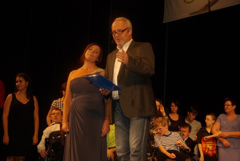 „Terapie zlepšují našim klientům zdraví nebo zmírňují následky jejich postižení. Je zajímavé, že právě na tyto terapie už státní dotace nepamatují. My čerpáme státní dotace na základní péči, ale na hipoterapii, canisterapii, fyzioterapii, masáže a další musíme sehnat peníze od dárců a od sponzorů. Stejně tak i na zajištění péče na pobytech, které v letním období několikrát pro děti organizujeme. Každý klient tam má svého asistenta a je to tedy docela náročné zajistit. Děláme to rádi, protože je to období, kdy si rodiče mohou alespoň na chvíli odpočinout,“ objasnila ředitelka Apropa Jitka Králová jak společnost letošní výtěžek z benefice a od partnerů využije. Klienti si sice na pobyty přispívají, ale zapotřebí je ještě nejméně dalších sedmi set tisíc korun, které pokryjí zbytek nákladů. Moderátor Jan Kovařík také z „paluby“ na pódiu Masarykova divadla upozornil, že odpolední setkání by se nemohla uskutečnit bez vstřícnosti města Jičína a dalších organizací, mj. kulturních zařízení města nebo technických služeb. Starosta Jan Malý, který převzal záštitu nad benefičním děním, připomněl letošní dokončení stacionáře APROPO v Soudné (podívejte se na odkaz: http://zpravyceskyraj.cz/klic-pro-tezce-zdravotne-postizene-odemkl-denni-stacionar/ ), a pak předal bývalé předsedkyni společnosti Janě Dolejší tradiční Cenu APROPO za celoživotní přínos a práci pro osoby s postižením.