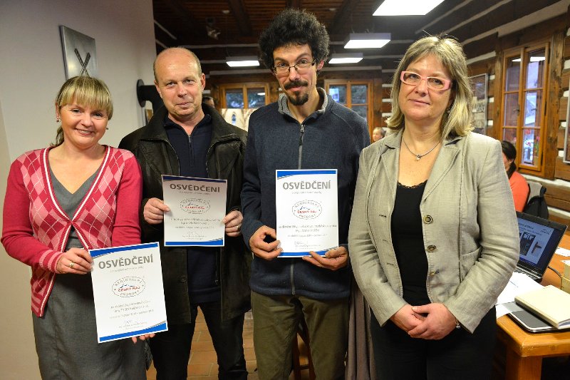 ČESKÝ RÁJ – Prestižní značka „Regionální produkt Český ráj“ má další nositele. Certifikát o propůjčení ochranné známky nově přijali: Mgr. Marek Vodička (dřevěné kliky, zakázková truhlářská výroba), Ing. Josef Wranovský (ruční výroba křišťálových lustrů a svítidel) a Jana Klazarová, zástupkyně firmy TYRES Kněžmost, s. r. o. (ekologicky pěstovaná jablka). Předávání se uskutečnilo v útulných prostorách Kamenářského domu v areálu Muzea Českého ráje v Turnově, kde se sešlo na třicet řemeslníků, výrobců potravin, zemědělců a dalších příznivců lokálních výrobků. V současnosti má prestižní označení „Regionální produkt Český ráj“ již téměř 50 certifikovaných výrobců, resp. pěstitelů či řemeslníků.