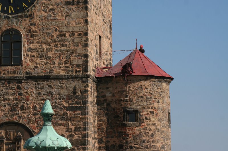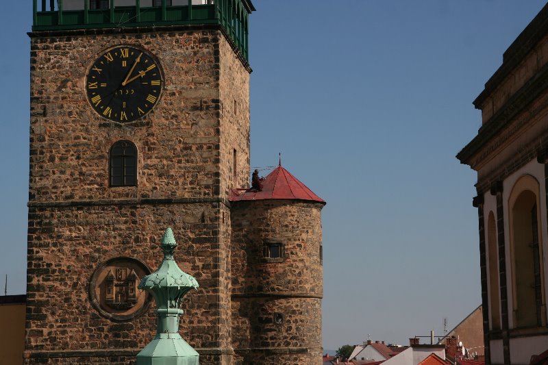 opravovat, pak se situace změní,“ říká jičínský místostarosta Petr Hamáček. „Pokud by tam dělali i nějaké mechanické práce, pak hrozí nebezpečí, že by dolů mohl spadnout kus plechu a je otázka, zda by plachty na lešení v dolní části věže tyto předměty dokázaly zachytit,“ dodává starosta Jan Malý. Předpoklad odpovídá i způsobu zpracování záměru nátěru, jehož součástí bylo i posouzení aktuálního stavu střechy. „To se kvůli bezpečnosti víceméně uskutečnilo bez lezení po střeše. Zatékání, vyjma některých míst kolem vikýřů, jsme však nezaznamenali,“ uvedl P. Hamáček.
