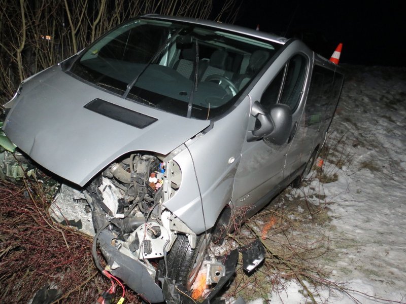 JIČÍNSKO / obchvat Jičína – V neděli 21. ledna o páté hodině ráno došlo na silnici číslo I/16 v úseku křižovatky s ulicí Konecchlumského na obchvatu Jičína k dopravní nehodě. Sedmadvacetiletý cizí státní příslušník tam měl ve směru od ulice Husova řídit Škodu Octavia. Zřejmě nerespektoval dopravní značení upravující přednost v jízdě a na uvedené křižovatce vjel přímo na hlavní silnici ve směru na Mladou Boleslav. Bezprostředně se pak v protisměru čelně střetnul s přijíždějícím Renaultem Trafic, ve kterém v tu dobu cestovalo kromě jednadvacetiletého řidiče ještě dalších sedm spolucestujících. Při nehodě se lehce zranilo celkem osm osob. Opakované dechové zkoušky u řidiče Škody Octavie prokázaly pozitivní hodnoty 1, 68 a 1,81 promile alkoholu v dechu. Celková škoda se předběžně odhaduje na 240 tisíc korun. Řidiči teď hrozí až tři roky za mřížemi.