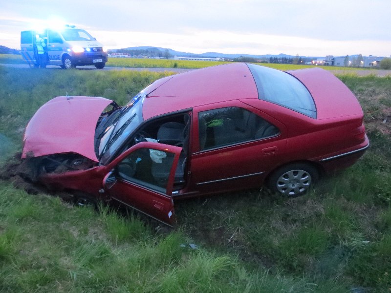 JIČÍN – K jedné z nehod došlo v pátek 1. května večer na obchvatu Jičína. Krátce před dvacátou hodinou jel dvaadvacetiletý řidič osobním autem Peugeot 406 ve směru od Úlibic na Poděbrady. Na obchvatu Jičína odbočoval na křižovatce do centra města a přitom zřejmě vlivem nepřiměřené rychlosti jízdy dostal smyk a vyjel vlevo mimo silnici do příkopu. Řidič utrpěl lehké zranění, vliv alkoholu vyloučila dechová zkouška. Celková škoda byla vyčíslena na 21 tisíc korun.