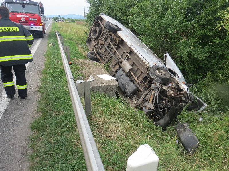 titulka LUŽANY – Ve čtvrtek 21. července odpoledne jel devětačtyřicetiletý řidič osobním vozem Škoda Fabia ve směru od Úlibic na Konecchlumí. U obce Lužany začal předjíždět před sebou jedoucí kolonu aut  a přitom vjel do jízdní dráhy nákladního vozu Mercedes-Benz, které jelo za ním a již uvedenou kolonu předjíždělo. Řidič nákladního vozu se snažil střetu zabránit, strhl řízení vlevo a přitom zachytil o škodovku a dále narazil do dopravní značky, patníku a rohu betonového mostku, kde se  následně  s   autem převrátil na levý bok. Při nehodě utrpěl řidič nákladního vozu lehké zranění, se kterým byl převezen do jičínské nemocnice. Alkohol na místě vyloučila dechová zkouška, celková škoda byla vyčíslena na 130 tisíc korun.