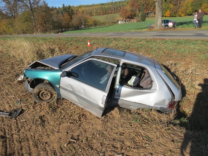 Bělohradsko – V neděli 1. listopadu krátce po poledni jela osmnáctiletá řidička osobním vozem Citroen Saxo ve směru od Miletína na Lázně Bělohrad. V pravotočivé zatáčce zřejmě vlivem nepřiměřené rychlosti jízdy vyjela vpravo mimo komunikaci, kdy se po strhnutí volantu vrátila zpět na silnici, kde dostala smyk, který nevyrovnala a následně se s vozem přetočila přes levý bok a střechu zpátky na kola. Při nehodě byly zraněny dvě spolujezdkyně. První z nich byla leteckou záchrannou službou transportována do Fakultní nemocnice v Hradci Králové a druhá pak rychlou záchrannou službou do Oblastní nemocnice v Jičíně. Alkohol u řidičky vyloučila dechová zkouška, celková škoda byla vyčíslena na 10 tisíc korun.