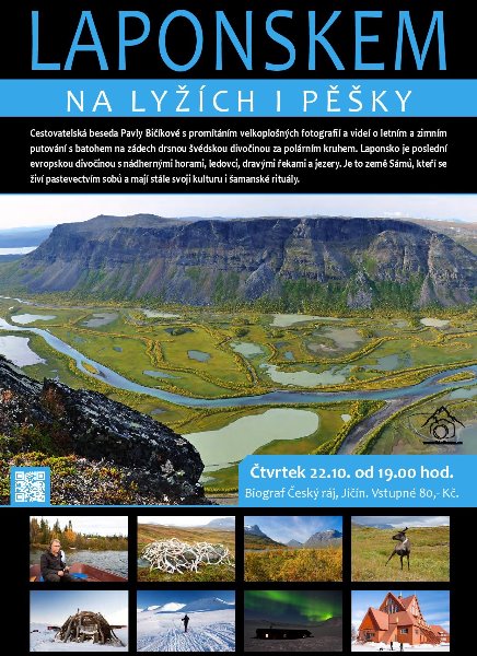 poutnice-2 KOZÁKOV / LAPONSKO – Letní a zimní cesty napříč Laponskem můžete „projít“ s Pavlou Bičíkovou z Kozákova. Velkoplošné fotografie a videa doplní vyprávěním příběhu o třídenní cestě Národním parkem Sarek, kam se vydala jen ve dvou s batohem na zádech. „Sarek je považován za poslední evropskou divočinu, kde místo cest, mostů, chat a telefonního signálu najdete nádherné hory, malebná údolí, ledovce, mokřady, divoké řeky a jezera. Místo lidí zde potkáváte divoká zvířata. A pochopíte, že v divočině panorama-lap nemá cenu plánovat, ale spíše naslouchat a nechat se vést,“ přibližuje svou laponskou cestu Pavla Bičíková. Prošla také Národní park Padjelanta a v zimě na běžkách putovala po Královské stezce (Kungsleden) kolem nejvyšší hory Švédska Kebnekaise a Národním parkem Abisko. „Během našeho putování jsme odhalovali tajemství Sámů (Laponců), kteří zde žijí a i dnes se živí pastevectvím sobů a mají stále svoji kulturu i šamanské rituály,“ dodává cestovatelka a zve na besedy, z nichž ta nejbližší bude v pondělí 19. října v Lomnici nad Popelkou, v Jičíně se můžete těšit 22. října v Biografu Český ráj. Termíny dalších setkání v Laponsku připojujeme pod fotogalerií. Podívat se můžete i na webové stránky www.bicikova.cz