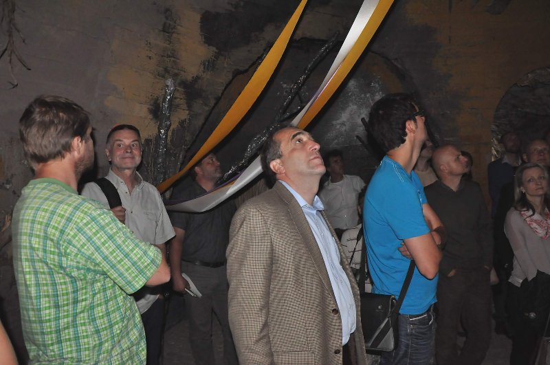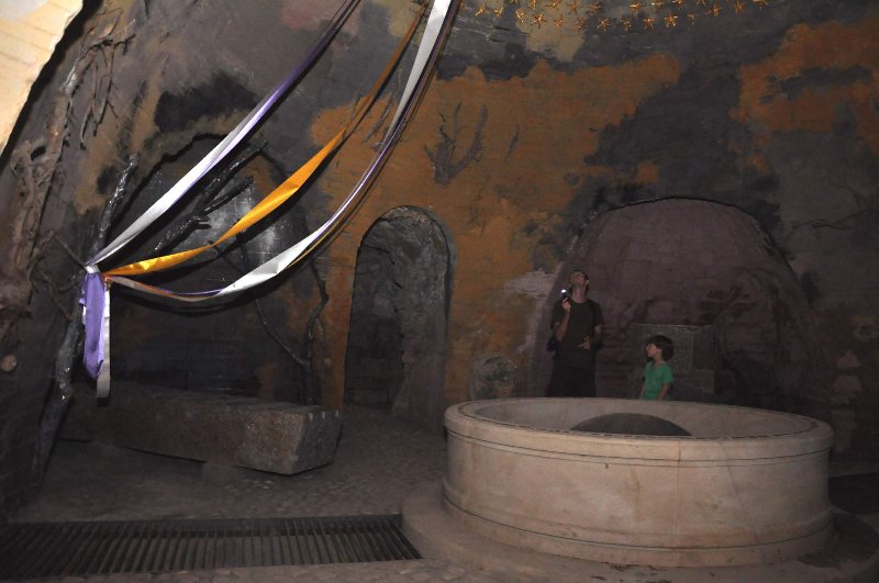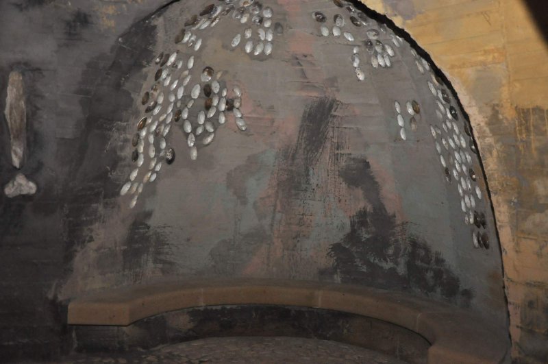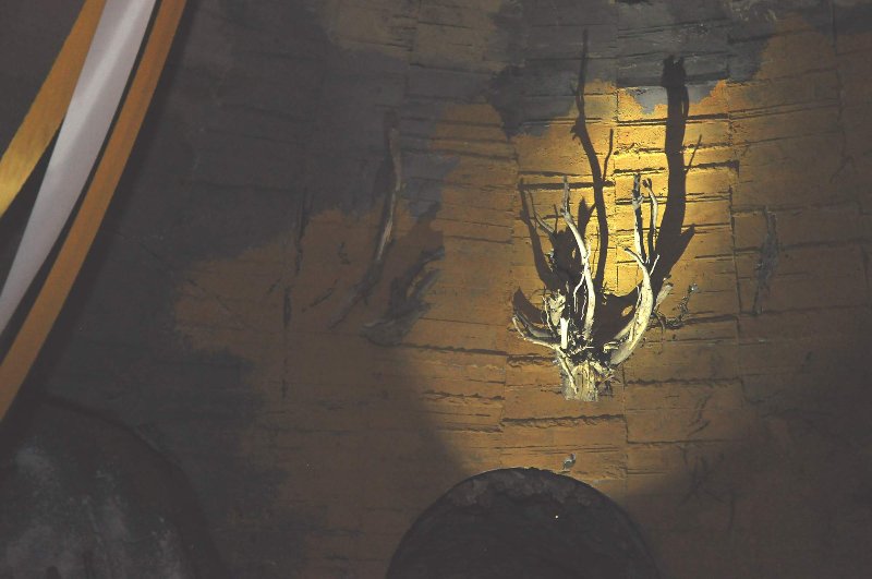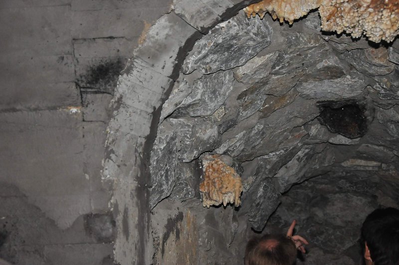 první ohyb severní chodby aplikace ametystové geody jako klenáku do klenby chodby