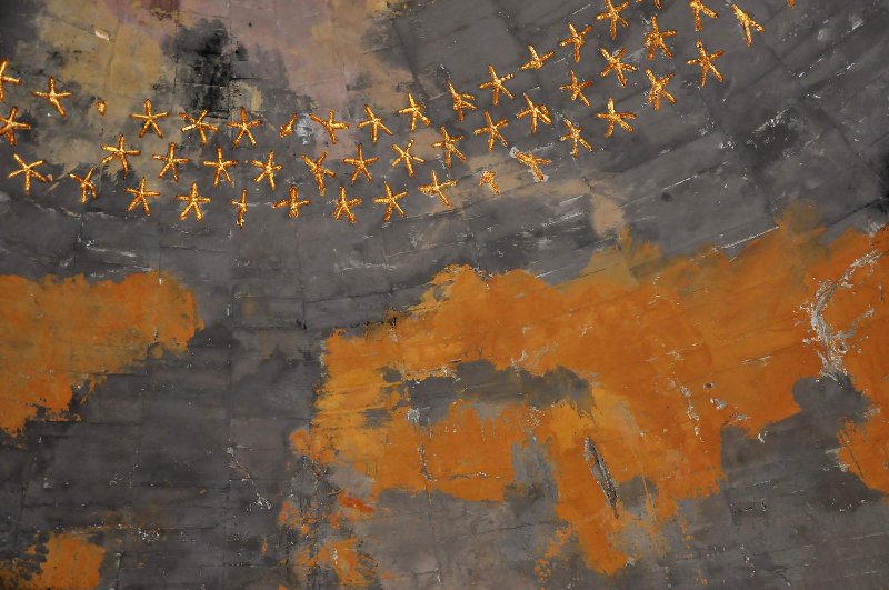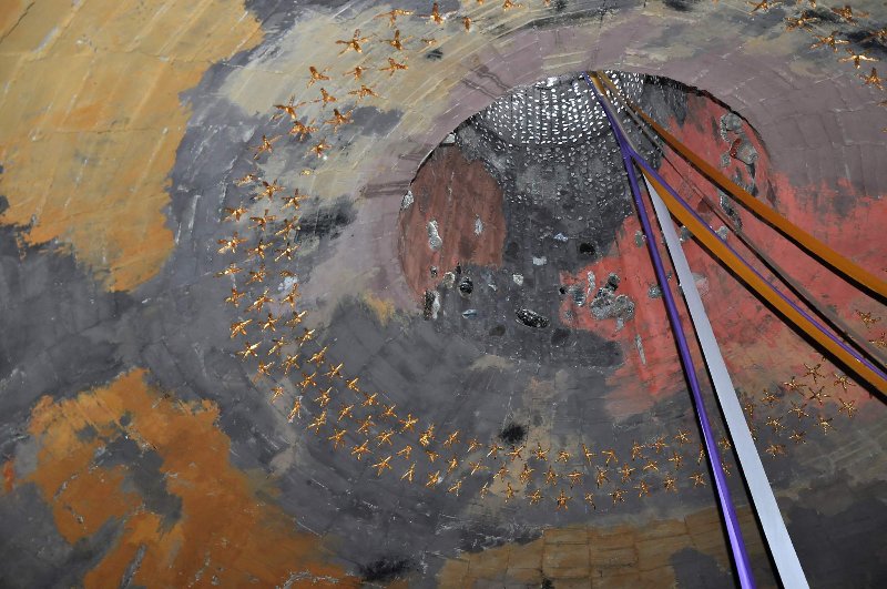 autorské aplikace zasahující i zbytek stěn a vertikální prostory, práce založená na kolíčkovaném bednění a třívrstvé aplikaci betonu, přičemž první, autorská vrstva bude obsahovat příměsi místních hlín, železitých pigmentů typu Rudického lomu u Blanska, fragmentů větví, středověkých strusek a soudobých strusek sklářských hutí – závěr procesu aplikace spojen s vyhořením vnitřního bednění a vysokotlakým vodním ostřikem