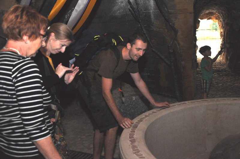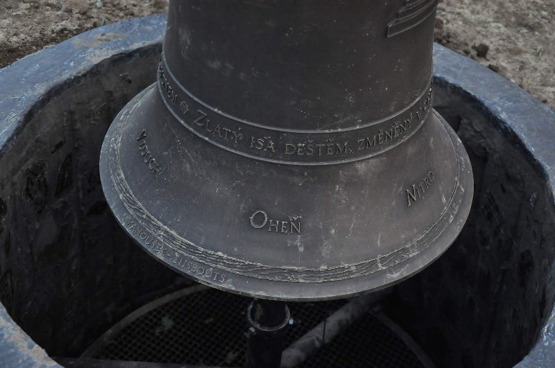 Spodní, studniční zvon může znít nejen v souladu s pomalu protékající vodou, ale zpod něj vyzařuje přísvit jemného světla jako prstenec dalšího vnitřního prostoru, jenž je orámován okružím studny, intarzované růženínem. Studna uprostřed nitra hory je zde srdcem, proto též název místa jako růženínové srdce.