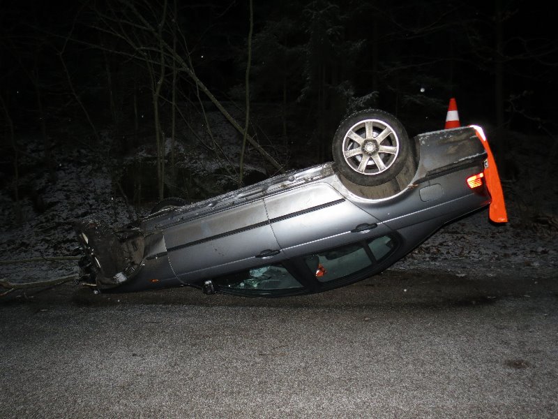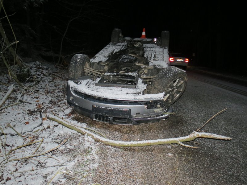 PAŘEZSKÁ LHOTA – Ve čtvrtek 4. února krátce po čtvrté hodině ranní jel třiadvacetiletý řidič osobním vozem BMW ve směru od Pařezské Lhoty na Prachov. V lesním úseku dostal v levotočivé zatáčce zřejmě vlivem nepřiměřené rychlosti jízdy smyk, který nevyrovnal a následně vyjel vpravo mimo silnici, kde po nárazu do dvou dopravních značek a náletového stromu skončil s vozem na střeše. Ke zranění osob nedošlo. Alkohol u řidiče vyloučila dechová zkouška, celková škoda byla vyčíslena na 61 tisíc korun.