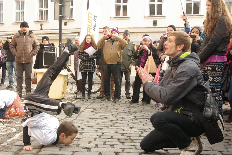 N 17 titulka JIČÍN – O tomto víkendu se přímo na dlažbě před radnicí na Žižkově náměstí v Jičíně bez rozpaků a odhodlaně představili tanečníci ze studia  „No limit“  z Jičína, kteří  trénují v Music Clubu TANGO. Tři kategorie od 4 do 15 let, tedy předškolní děti, mladší a starší žáky a žákyně pohybově a rymicky formuje erudovaný taneční instruktor, rodák z Jičína Martin Hartman. Někteří účinkující zažili v sobotu i první  veřejnou premiéru. Nějaká ta chyba by se jistě našla, ale Martin byl (i vzhledem k „uličním“ podmínkám) spokojený : (poslechněte si zvuk)
