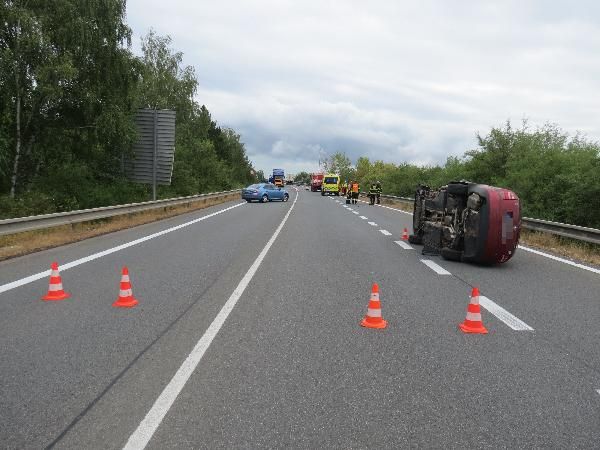 Řidička  se s autem převrátila na střechu.  Při nehodě se zranili tři lidé