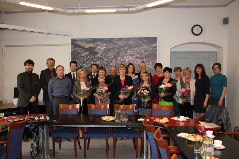 TURNOV / Český ráj – Turnovská radnice ocenila nejlepší pedagogy, kteří svým přístupem k žákům a způsobem výuky vynikají. „Je to krásná tradice a moje milá povinnost. Práce, kterou odvádíte, je pro turnovské děti zcela zásadní, protože jim dáváte první impuls ke vzdělávání a daří se vám vychovávat děti k lásce ke studiu,“ přivítal starosta Tomáš Hocke učitele ze základních a mateřských škol a také z umělecké školy. Místostarostka Petra Houšková ještě připomněla přirozenou lehkost oceněných pedagogů, kteří jsou zároveň autoritou díky důrazu na komunikaci nejen s žáky, ale také s rodiči. Za Základní školu Skálova byla oceněna Dagmar Vlková, za ZŠ 28. října Ivana Jirošová, ze Základní školy Žižkova Ivana Dlasková, ze ZŠ Zborovská Jiřina Kohoutová, ze speciální základní školy Sluníčko Jana Prokešová. Mezi oceněnými byla i Milena Dufková z Waldorfské mateřské školy a jediným mužským pedagogem byl Václav Sajbt ze Základní umělecké školy. Všechny dámy dostaly květinu, knižní publikaci a upomínkový pamětní list, oceněný muž si místo květiny odnesl i lahev vína. V neformální diskusi se pak účastníci zabývali mj. bezbariérovostí nebo dopravní situací v okolí škol, např. neukázněným parkováním.