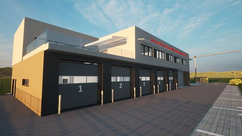 V prvním patře budou pokoje pro lékaře a řidiče, společenská a jednací místnost, kuchyňka s terasou, šatny, toalety a sprchy.