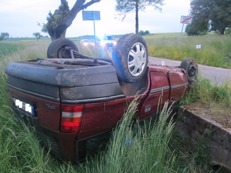 DOLANY – V pondělí 25. května večer jel osmadvacetiletý řidič osobním autem Opel Astra ve směru od Jičína na Kopidlno. V Dolanech po projetí pravotočivé zatáčky dostal zřejmě vlivem nepřiměřené rychlosti jízdy smyk, který nevyrovnal a následně vyjel vlevo mimo silnici, kde se převrátil na střechu. Při nehodě utrpěl řidič lehké zranění, se kterým byl převezen do Oblastní nemocnice v Jičíně. Policisté, kteří havárii šetřili, zjistili, že muž neměl za volantem co dělat, neboť nevlastní řidičské oprávnění a k tomu má Okresním soudem v Jičíně vysloven do roku 2020 zákaz řízení všech motorových vozidel. Navíc on ani jeho spolujezdkyně nebyli za jízdy připoutáni a to proto, že ve voze chyběly bezpečnostní pásy. Celková škoda byla vyčíslena na 11 tisíc korun.