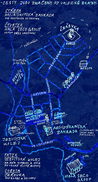 K dnešnímu dni patří od půl šesté vpodvečer i zahájení alternativního programu „JInčí čin“ ve farní zahradě za kostelem sv. Jakuba v Jičíně. Zítra od 15 hodin pokračuje v hale Seco Group v areálu bývalé Knotkovy továrny v Jičíně. Vstup na všechna „alternativní“ místa je zdarma.