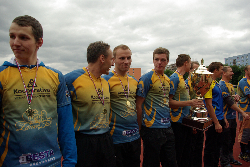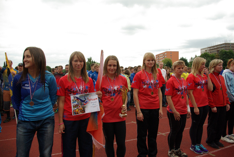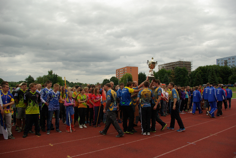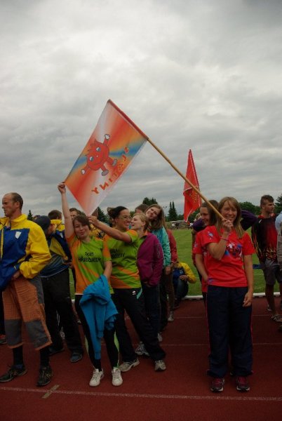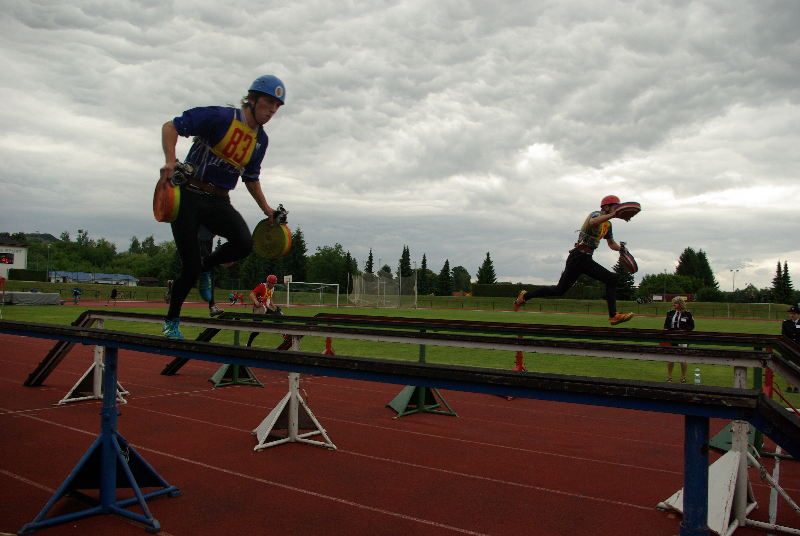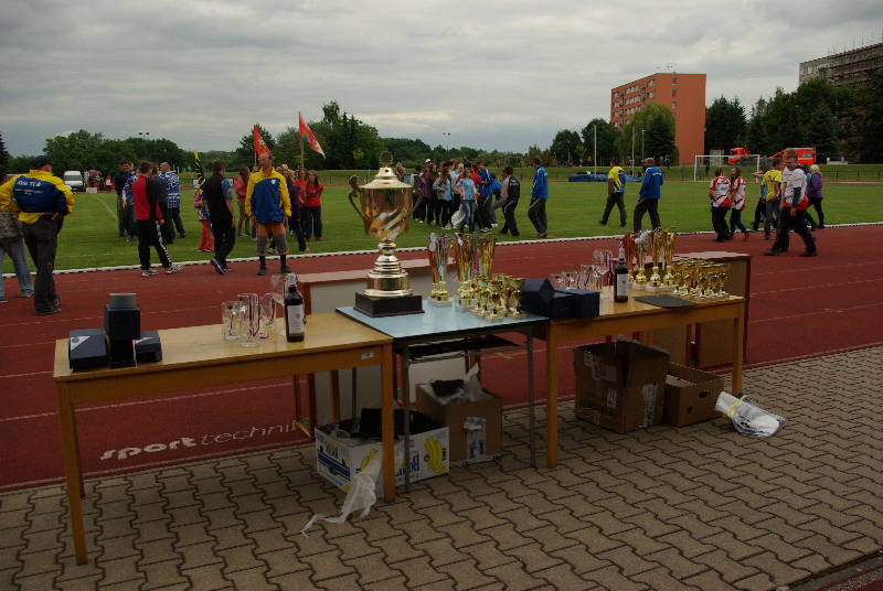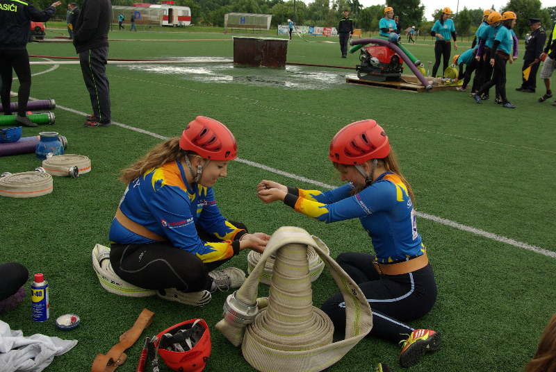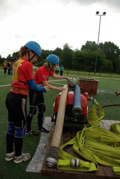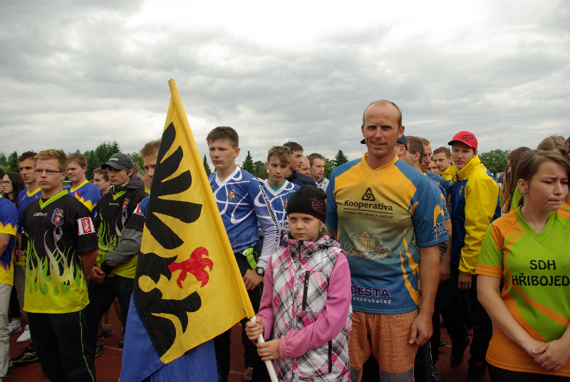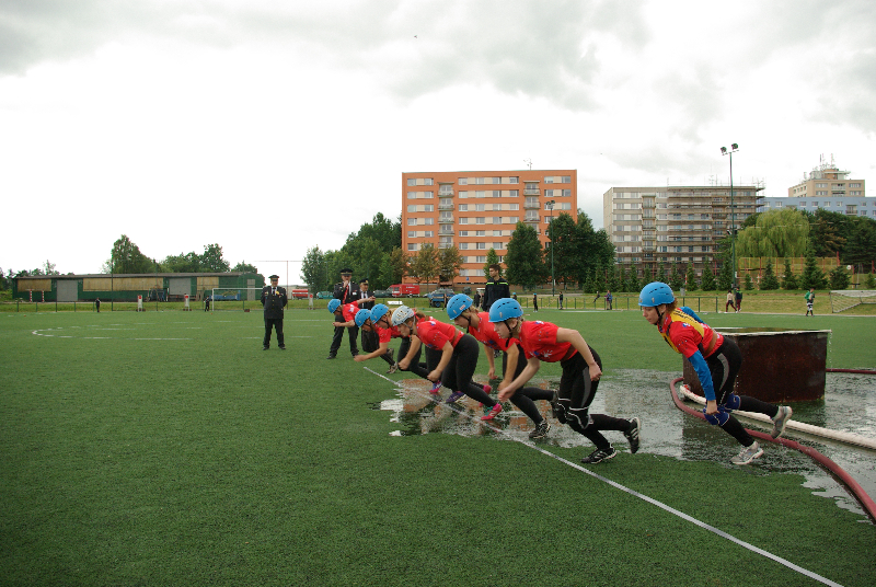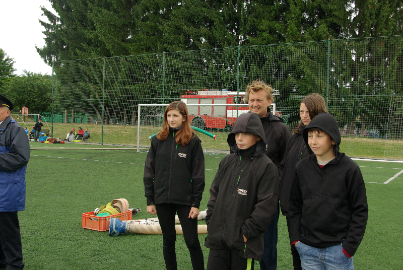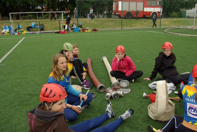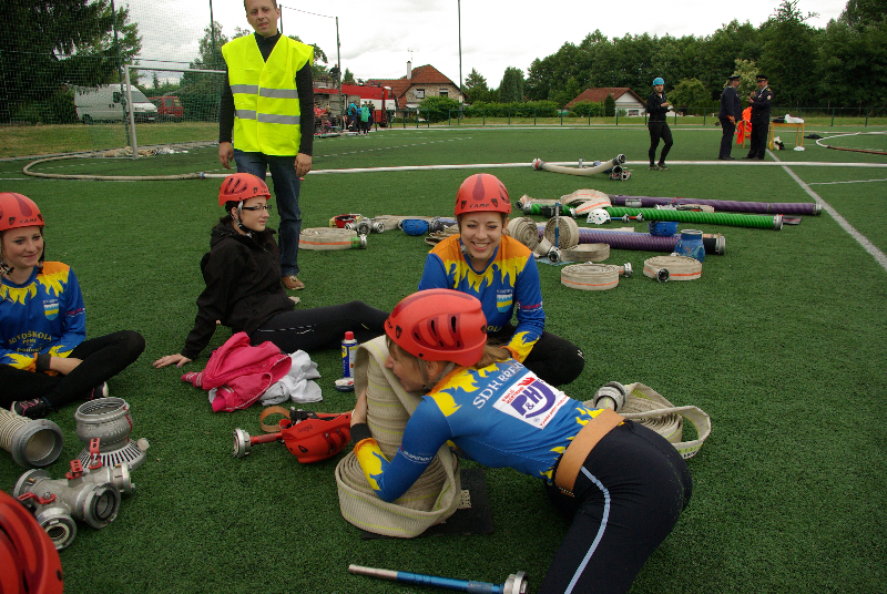 Soutěž v požárním sportu mezitím pokračovala i na sousedním hřišti. Zastihli jsme tam hasičky ze Slatin na Jičínsku a vyzpovídali i jednoho ze zástupců technické čety, který má bohaté zkušenosti s prací s  hasičskou mládeží : (poslechněte si)