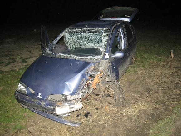 KOPIDLENSKO – V pátek 28. února večer jel čtyřicetiletý řidič auta Renault Megane Scenic ve směru od Kopidlna na Libáň. V obci Ledkov vyjel zřejmě vlivem nepřiměřené rychlosti jízdy vpravo mimo vozovku, kde narazil do stromu, od kterého se odrazil na břeh rybníka, kde se vůz převrátil na bok. Řidič, který měl v dechu přes 2,7 promile alkoholu, utrpěl zranění, se kterým byl hospitalizován v jičínské nemocnici. Celková škoda byla vyčíslena na 41 tisíc korun.