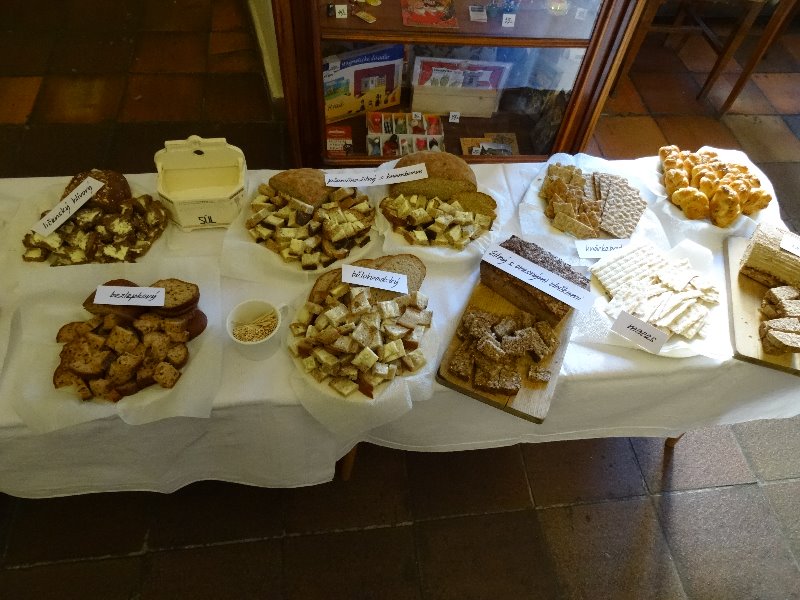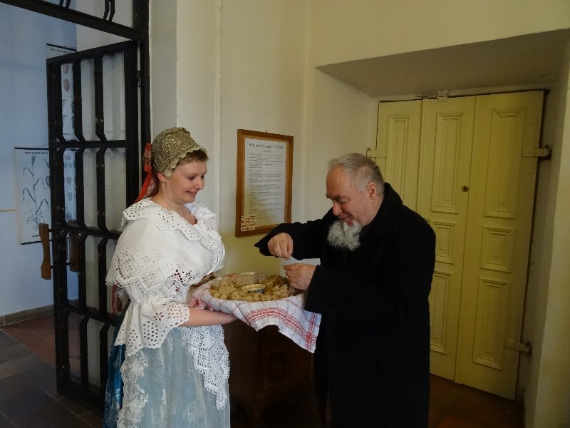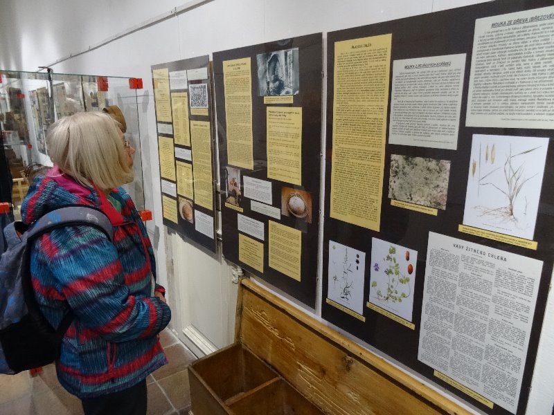 od nepaměti provází každodenní kroky člověka a stal se nedílnou součástí lidové slovesnosti i lidových obřadů od narození až do smrti. Svou úlohu hraje v písních, koledách, pověstech, příslovích či přirovnáních. Pomocí chleba se dají vyjádřit charakterové vlastnosti člověka, vztahy dědictví i vztahy v zaměstnání. Nedílnou úlohu sehrál v magických obřadech a věštění, které naši předkové praktikovali při vánočních, velikonočních i dalších svátcích církevního roku nebo se uplatnil při lidovém léčení. Chléb symbolizoval život jako takový a lidé si jej v dřívějších dobách nadmíru vážili,“ doplňuje H. Macháčková. Nová výstava představuje vývoj chleba od pravěku, kdy se objevují první obiloviny a pokusy připravit z nich mouku.
